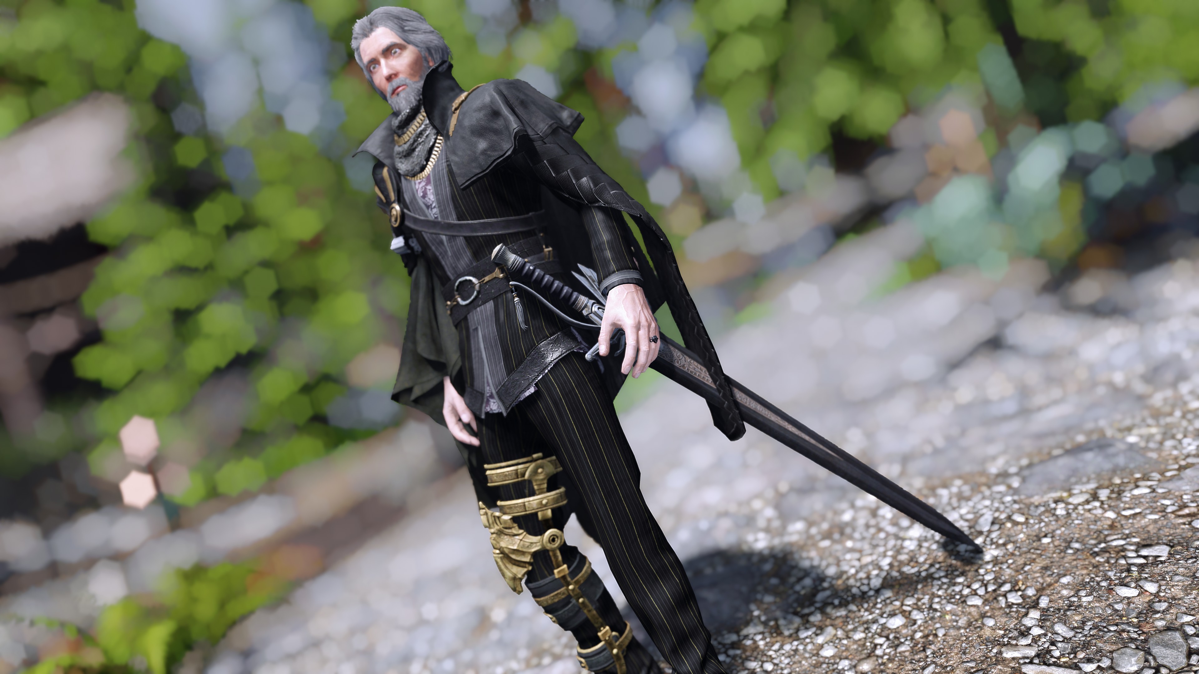 간만의 남캐 의상입니다. 파이널 판타지 XV 나오는 레기스 루시스의 의상과 무기입니다. 캐릭터를 그대로 뽑아와서 텍스쳐를 손본것 같은데 퀄리티도 좋고 간지를 뿜어내는 어르신 입니다. 남캐의상 많지 않았는데 아주 좋습니다. 물리가 적용되어 있기때문에 HDT-SMP 를 선행으로 합니다.