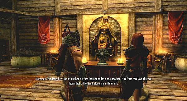엘더스크롤5 스카이림에서 새로 생긴 시스템중 가장눈에 띄는것이 결혼 시스템 입니다. 여기서 더 놀라운 사실은 동성끼리도 결혼이 가능하다는 것.. 아무튼, 그럼 결혼을 할려면 어떤 여자를 어떻게 꼬셔야 하는것인가! 라는 고민을 하실텐데 결혼을 하는 방법은 의외로 간단합니다. 바로 여자 NPC의 눈에 콩깍지를 씌우는 마라의 아뮬렛(Amulet of Mara)만 있으면 됩니다.